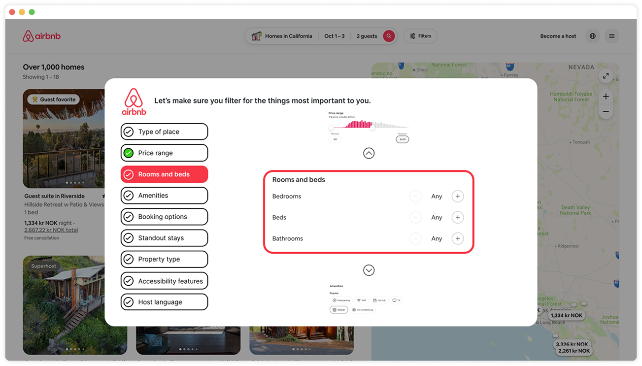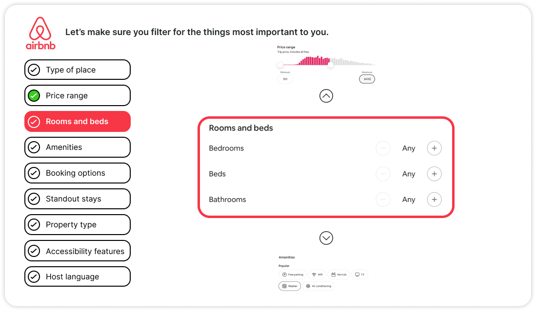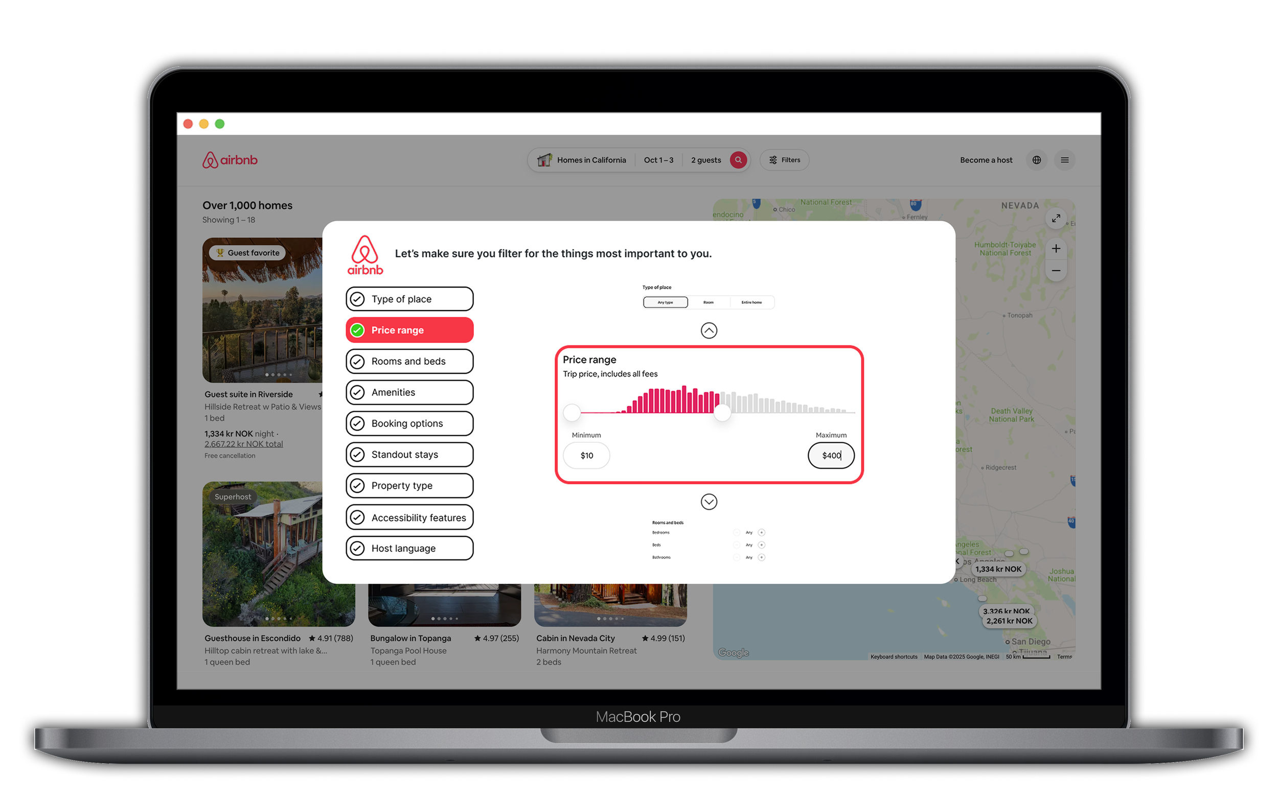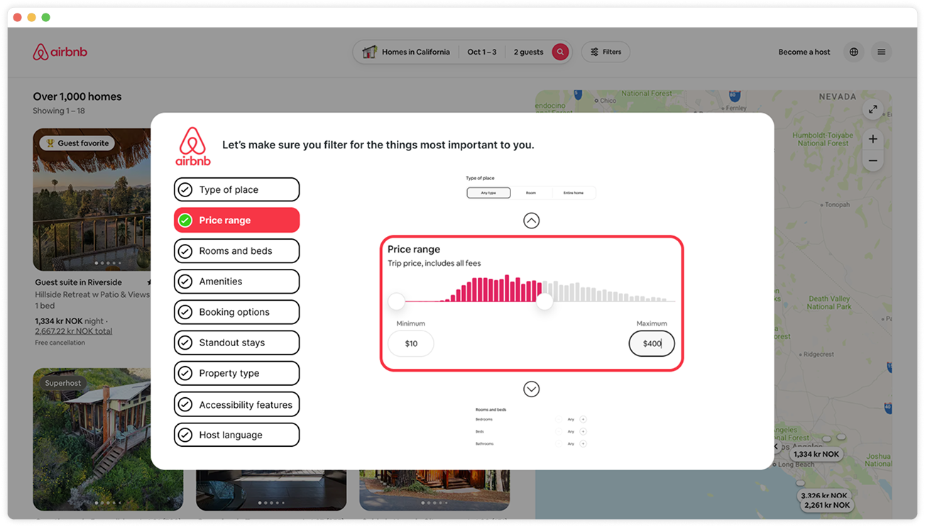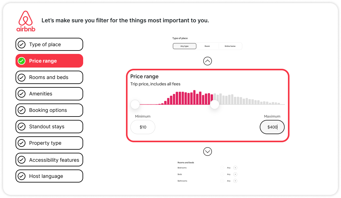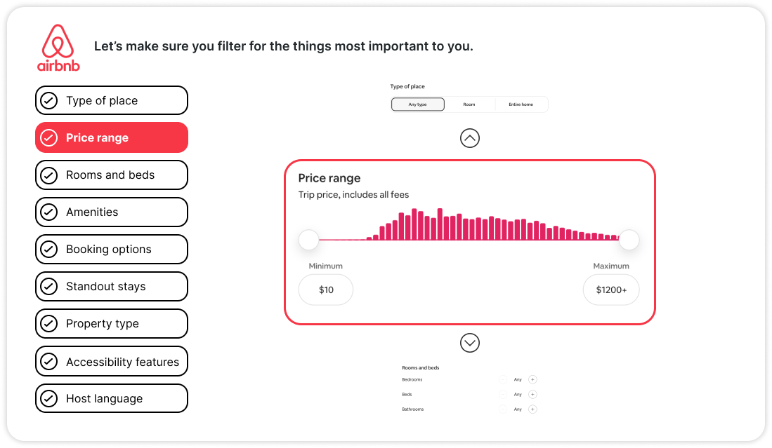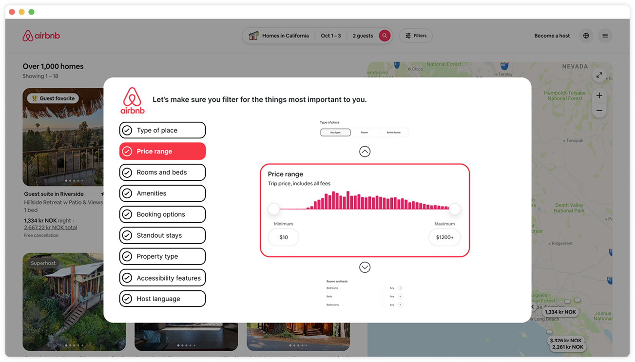 Learn about how users interact with the Airbnb website (desktop version) when searching and filtering for accommodations.