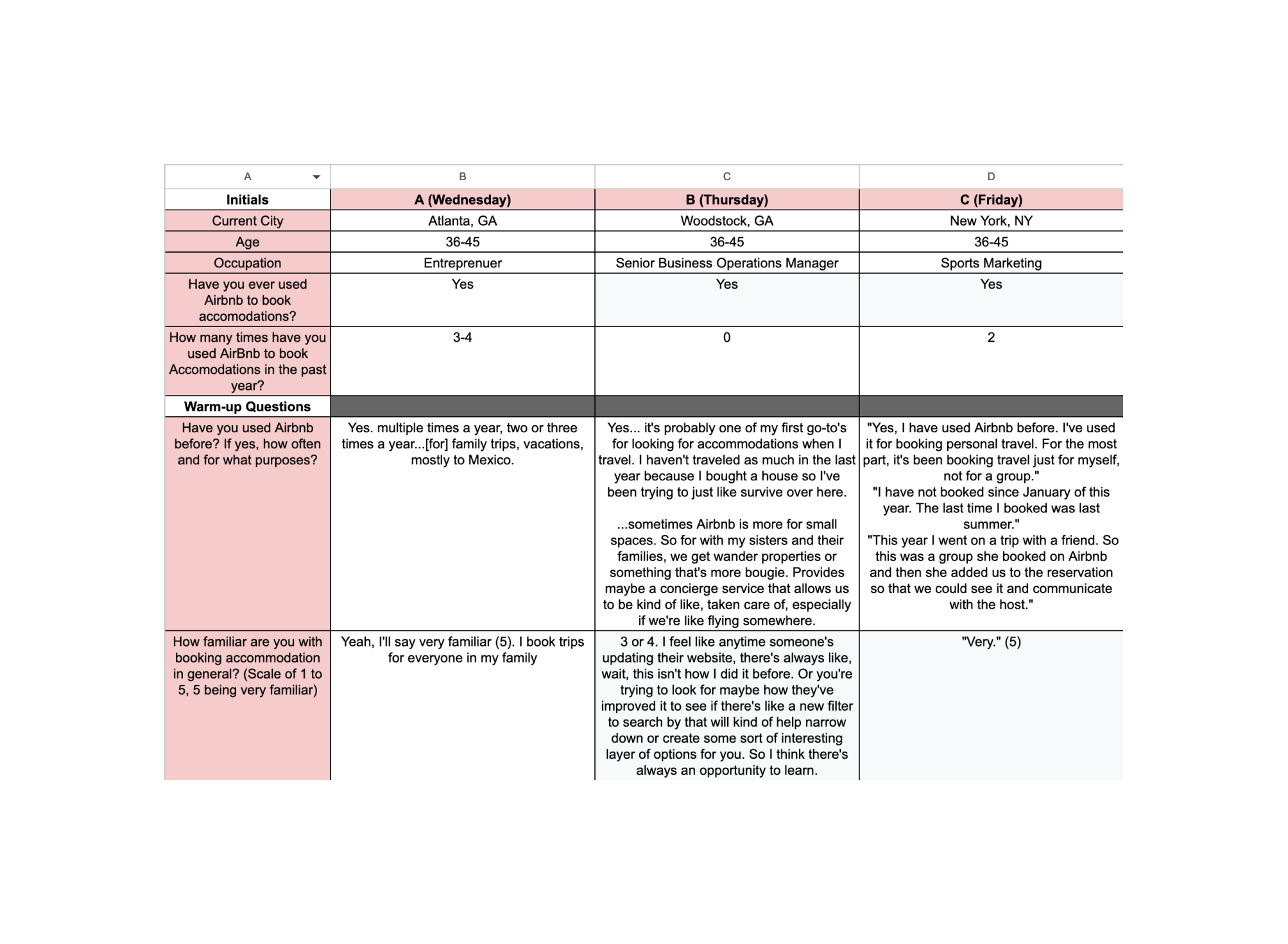 A screener was created and published on social media to collect demographic information, Airbnb experience, and availability.