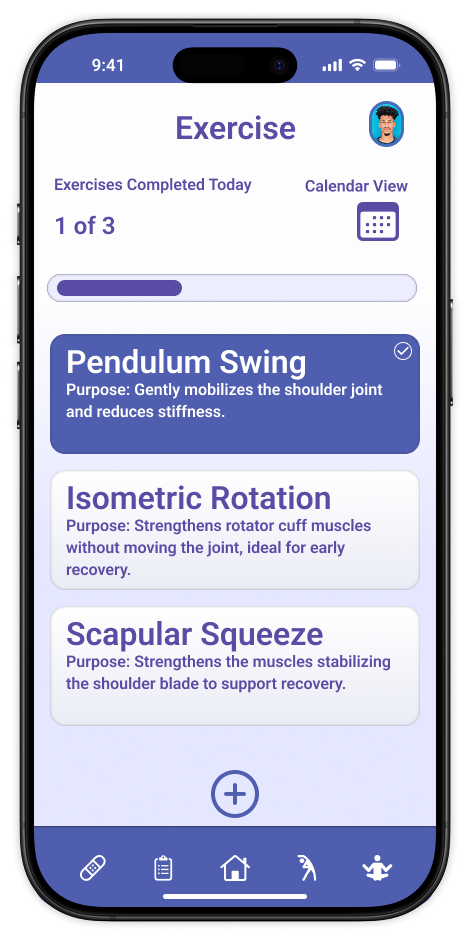 Recovery from shoulder injuries like rotator cuff tears is demanding and emotionally taxing, especially for individuals like Chris (persona), whose identity is tied to sports. Users often forget rehab exercises, prolonging recovery. The app must collect research data without overwhelming users, promoting consistency and mindfulness.