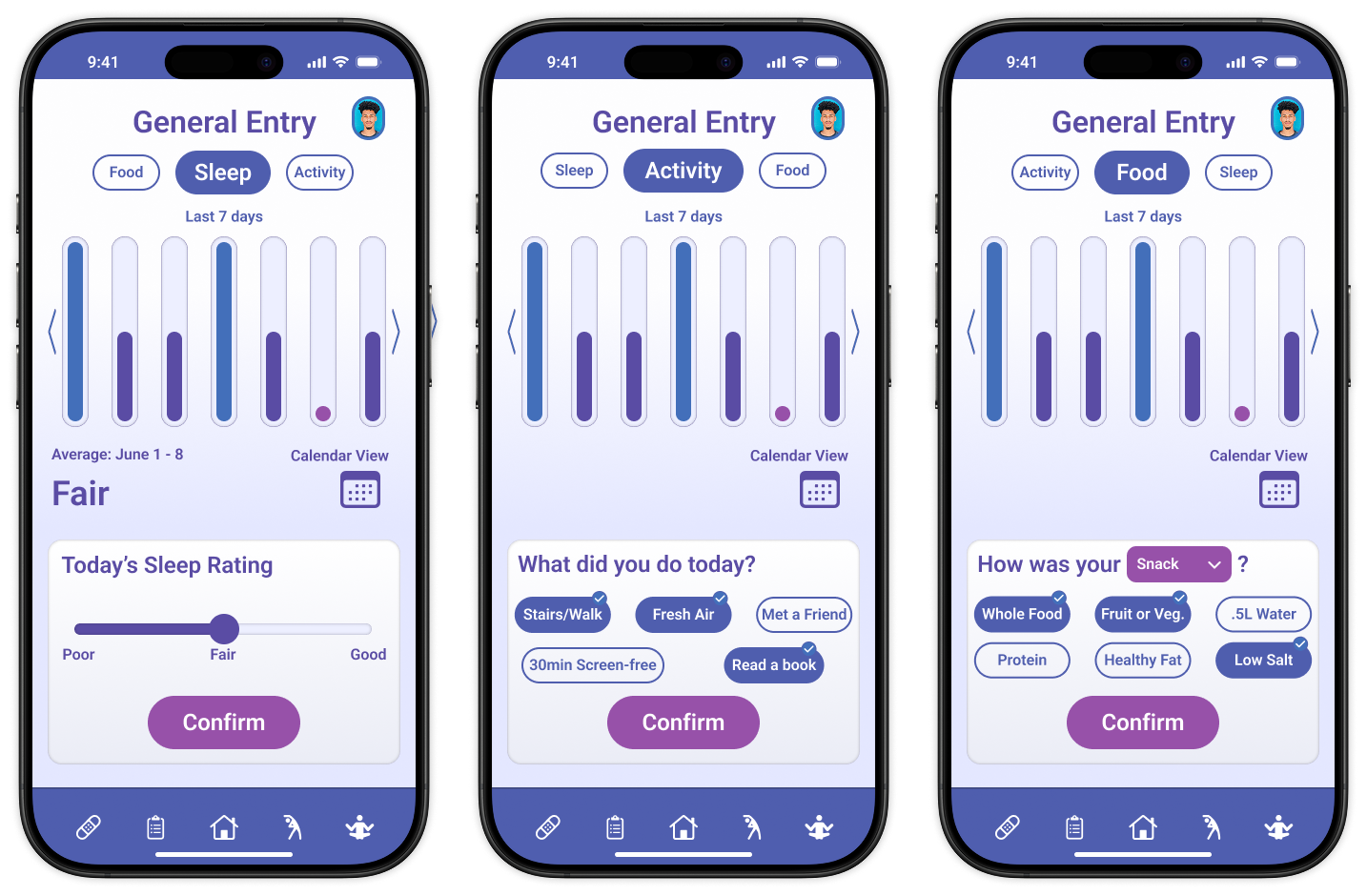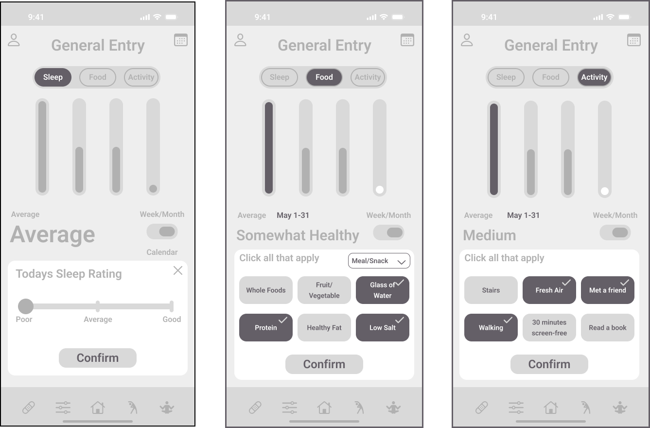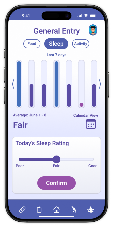 We focused on enhancing efficiency in navigation and data entry to motivate our user persona, Chris, to use the app daily.